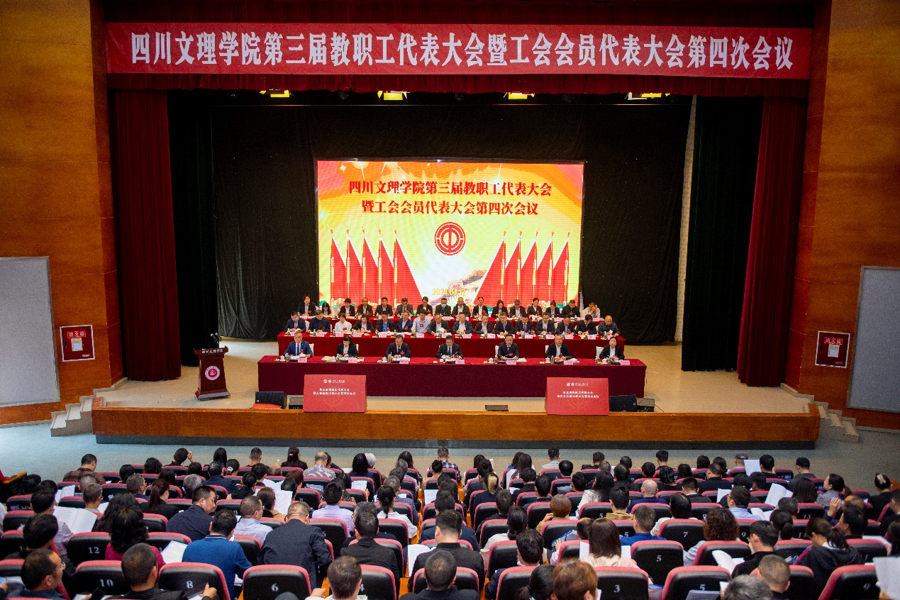 4月12日下午,beat365官方网站第三届教职工代表大会暨工会会员代表大会第四次会议在莲湖校区开幕。党委副书记、校长侯忠明作《学校工作报告》。会议审议了《学校工作报告》《学校财务工作报告》《工会报告》以及《工会经费审查报告》。党委副书记、工会主席朱兴华主持会议并作闭幕讲话,党委副书记、纪委书记帅胤,党委常委、副校长徐晓宗、邓杰、程碧英、苟兴龙出席会议。