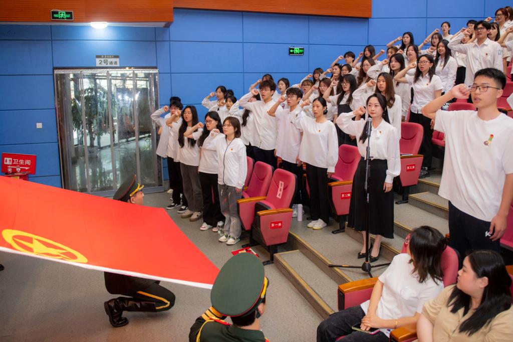 大会举行了新团员集体入团宣誓和老团员重温入团誓词仪式,全体团员青年庄重地举起右拳,向团旗宣誓。