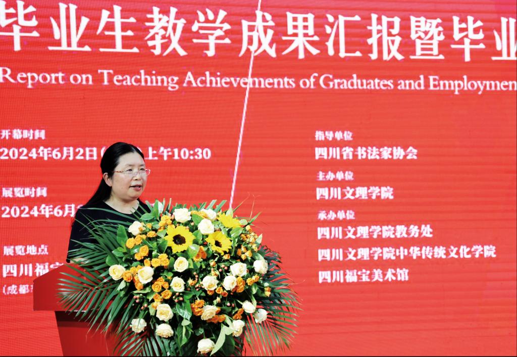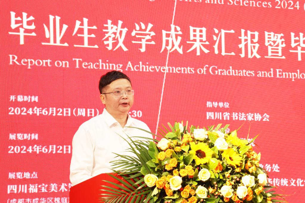6月2日,beat365“青檬流光”——2024届(首届)书法学专业毕业生教学成果汇报暨毕业生就业推介会在四川福宝美术馆举行,中国书协副主席、四川省文联副主席、四川省书协主席戴跃出席讲话并宣布活动开幕,党委书记黄涛出席,校长侯忠明致辞,副校长程碧英主持开幕式,省市书协领导、书法艺术界专家、兄弟高校书法教育工作者,以及beat365实践教育单位嘉宾和师生200余人共襄盛会。