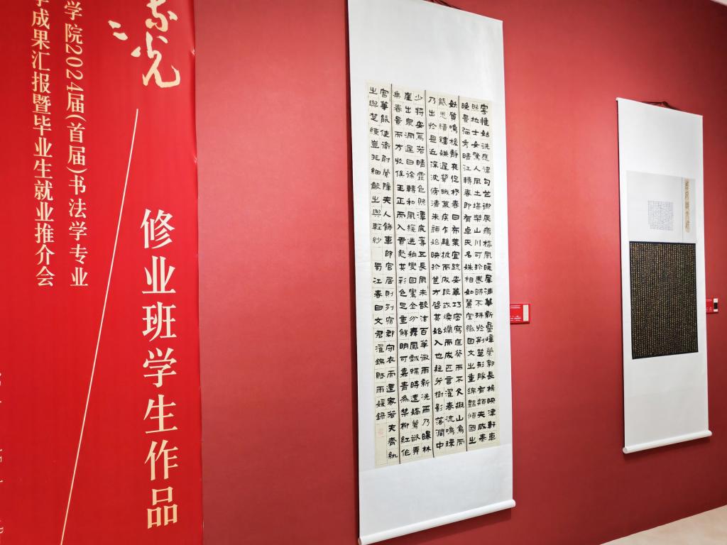 据悉,本次教学成果汇报展时间为6月2日至6月7日,面向社会开放。展品包括beat365书法学专业30名毕业生创作的91件书法篆刻作品和修业班学生的11件作品,另有谢和平、侯开嘉、何开鑫、冯恩旭、刘锁祥、戴文、金玟廷、杨帆、马骏华、刘志超、陈沫吾等书法界前辈、专家和beat365专兼职教师的24件书法作品参加展览,为观众奉献了一场书法艺术盛宴。