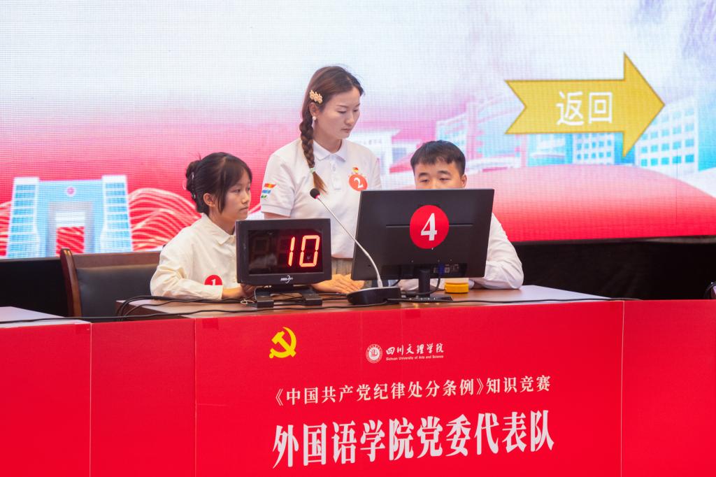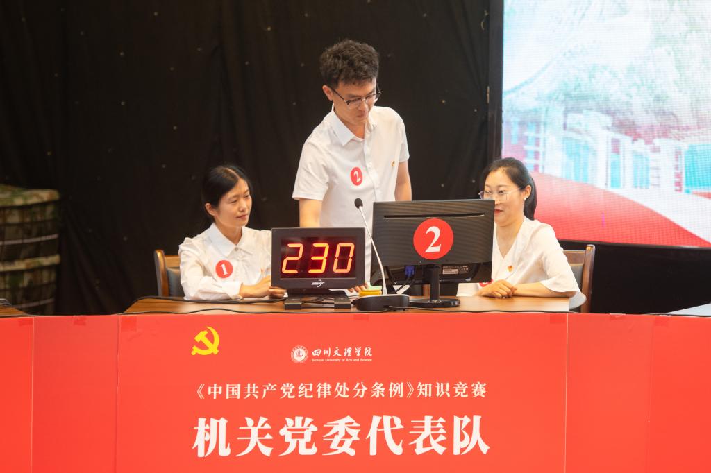 6月13日,党委宣传部、校纪委办公室联合策划举办的“清韵润文理 条例大家学”《中国共产党纪律处分条例》知识竞赛(决赛)在学校艺术传媒大楼多功能演播厅顺利举行。省纪委监委驻校纪检监察组组长、校党委副书记、纪委书记帅胤和党委常委、副校长程碧英出席决赛现场,学校各职能部门负责人及部分二级学院党委书记亲临现场观赛。比赛特别邀请了政法学院、知识产权学院党委书记岳臣忠、院长刘长江和朱仕金博士组成专家答疑组。