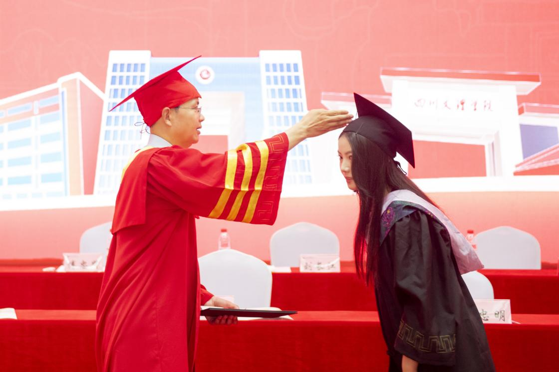 作为优秀毕业生代表,2020级外国语学院的刘悦淇同学在发言中回忆了难忘的大学时光,畅谈求学的感悟体会。她说无论前路多么艰辛,我们都要相信前行的力量;无论走到哪里,我们都为川文理代言。