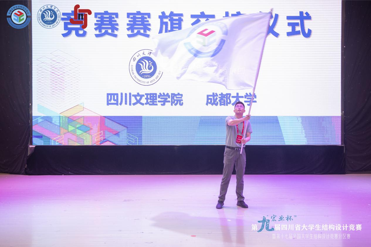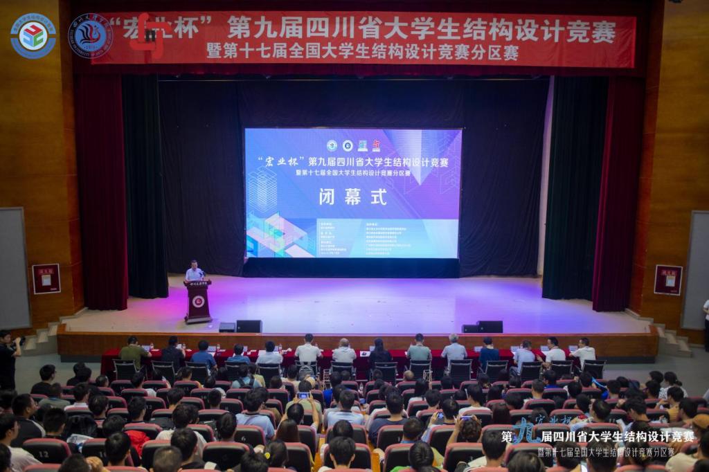 闭幕式上,结构组评委专家组长西南交通大学潘毅教授和岩土组评委专家组长成都理工大学路军富教授分别进行了精彩点评,由潘毅教授进行了赛事总结并宣布了组委会奖项设置以及国赛资格推荐办法。组委会和专委会专家为本次竞赛获奖高校和参赛队伍颁奖。会上宣布了下一届承办高校为成都大学,并顺利进行了赛旗交接仪式。下一届承办高校代表成都大学建筑与土木工程学院副院长董建辉教授表示,有信心办好下一届竞赛,尽全力为各参赛高校和队伍做好服务。