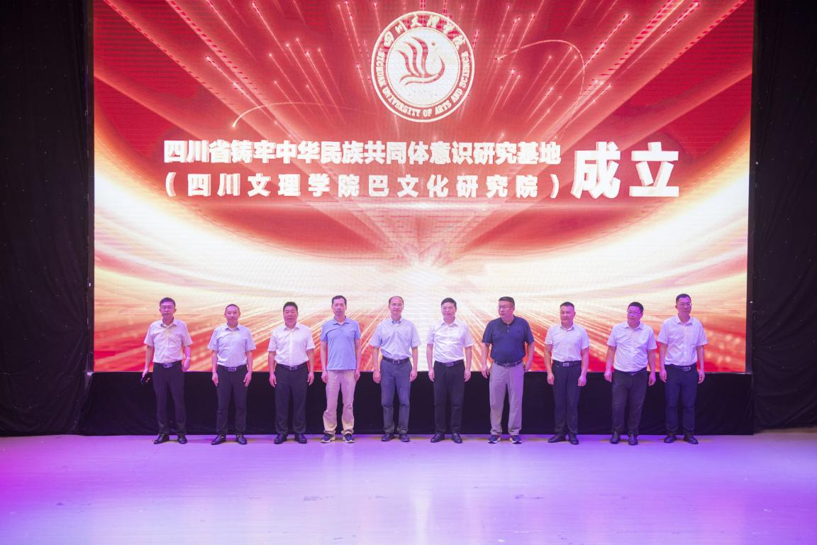 省委统战部民族和宗教工作处一级调研员淳修元、省委教育工委宣思统战处一级调研员曹善忠、省民族宗教事务委员会协调推进处处长、一级调研员刘劲松、省民族研究所副研究员刘金成、中共达州市委宣传部四级调研员李文峰、中共达州市委教育工委专职副书记冯雷、达州市民宗局副局长陈兴春、达州市社科联党组书记、主席孙黎龙、达州市巴文化研究院副院长赵国良、学校党委书记黄涛、校长侯忠明等出席揭牌仪式并为“四川省铸牢中华民族共同体意识研究基地”揭牌。揭牌仪式由副校长邓杰主持。