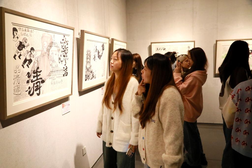 帅胤指出,举办此次廉洁文化作品展,既是深入学习贯彻习近平新时代中国特色社会主义思想和关于廉洁文化建设系列重要指示批示精神的具体体现,也是学校深化廉洁文化建设、持续丰富人文校园精神文化的一项重要举措。今年学校启动“铁纪护征程 廉洁伴我行”廉洁文化建设系列活动,旨在打造廉洁文化宣传新品牌,在传播廉洁之声、倡导廉洁理念、讲述廉洁故事、弘扬清风正气等多方面深耕细作,扎实推进新时代校园廉洁文化建设。