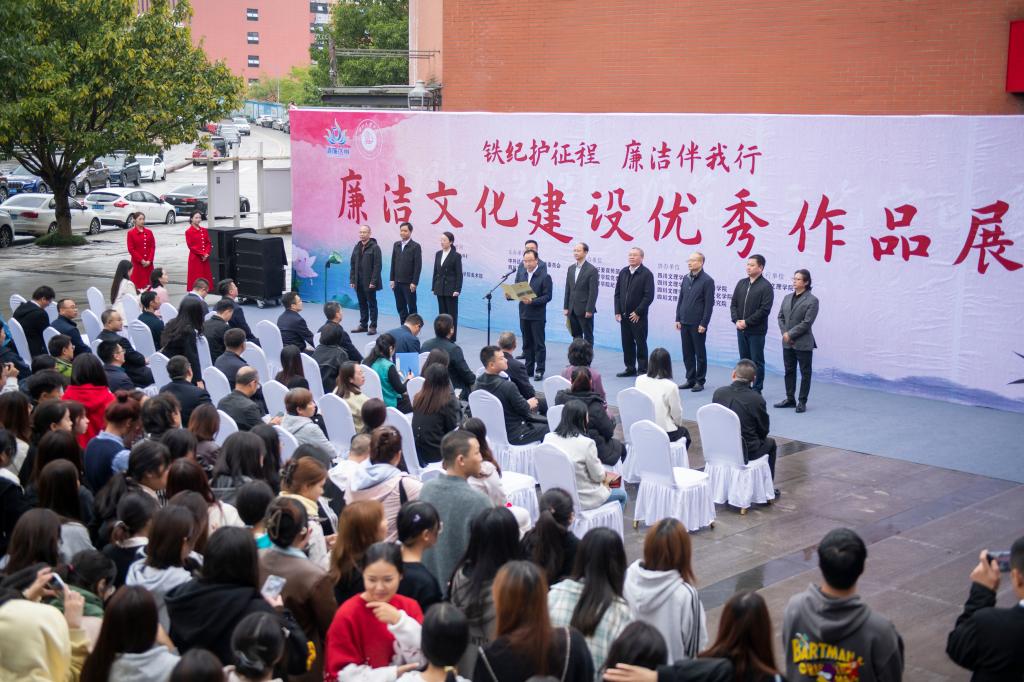11月4日,由达州市纪委和beat365官方网站共同举办的“铁纪护征程 廉洁伴我行”廉洁文化优秀作品展在学校美术馆开幕。beat365官方网站党委书记黄涛、党委副书记徐晓宗,达州市纪委常务副书记、市监委副主任陈泽健出席开幕式。省纪委监委驻beat365官方网站纪检监察组组长、党委副书记、纪委书记帅胤主持仪式。