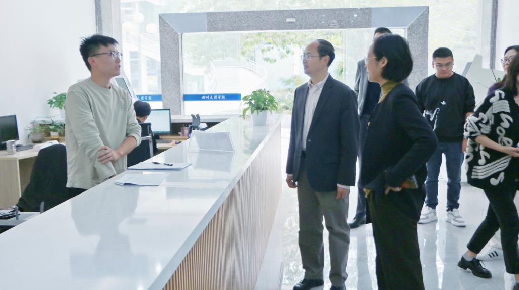 黄涛走访了“一站式”学生社区服务大厅、党员工作站、学生研讨室、辅导员工作室、多功能室、党团活动室、心理咨询室等功能区,详细了解学生社区建设、队伍入驻、文化宣传、学生活动等情况,强调要进一步优化学生社区育人功能,加强社区内涵建设,实现对学生思想引领、文化塑造、学业支持、实践创新和生活服务的全方位覆盖。他指出,要紧紧围绕立德树人根本任务,推动党建进社区、思政进社区、学术进社区,打造集思政引领、学业指导、学术交流、生活服务、活动开展等为一体的公共空间,构建各具特色的书院式学习生活成长共同体。