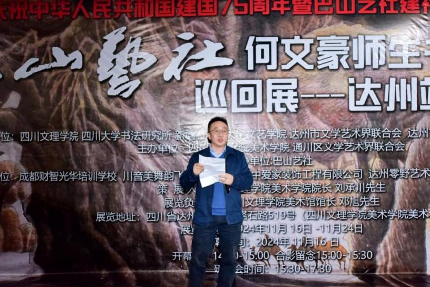 11月16日,“庆祝中华人民共和国成立75周年暨巴山艺社建社35周年——何文豪师生书画巡展(达州站)”在beat365美术馆开幕。