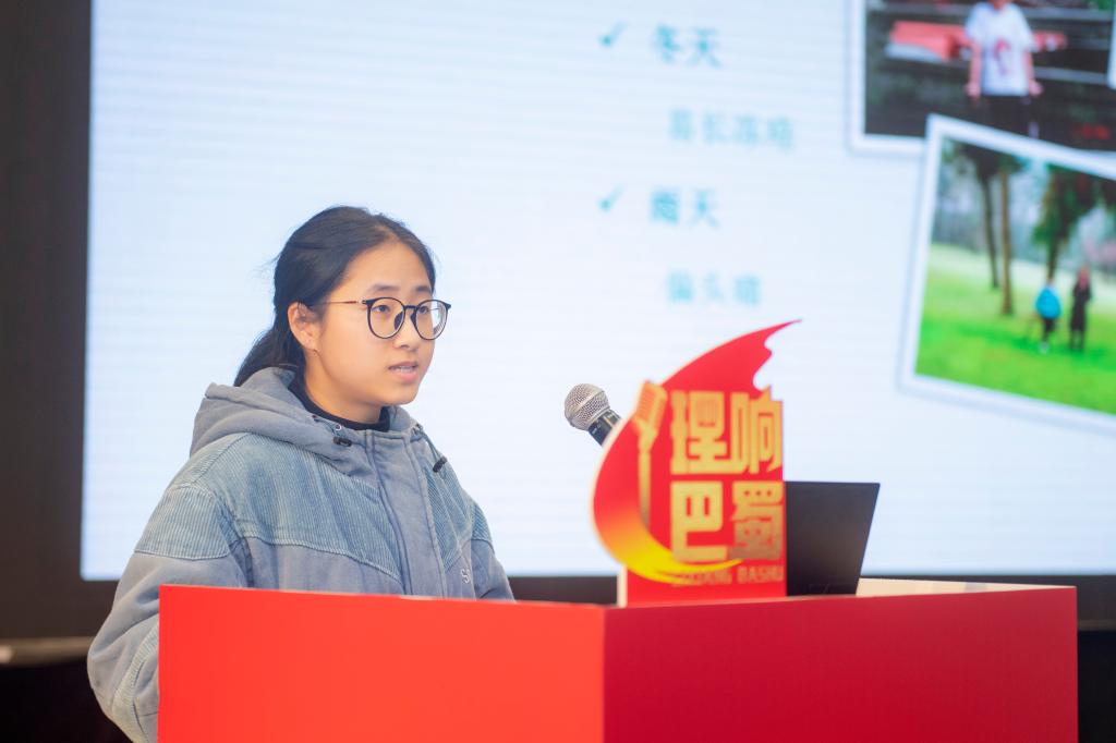 朱宇宣讲的题目是“身残志坚 励志向上”。她分享了自己在汶川地震中失去左腿后的艰难历程,以及在伤痛中不断克服困难,勇往直前的故事。她经过不懈努力和坚持,成功进入心仪大学,在校园里积极参与各种活动,充分展现了自强不息的时代新青年形象。