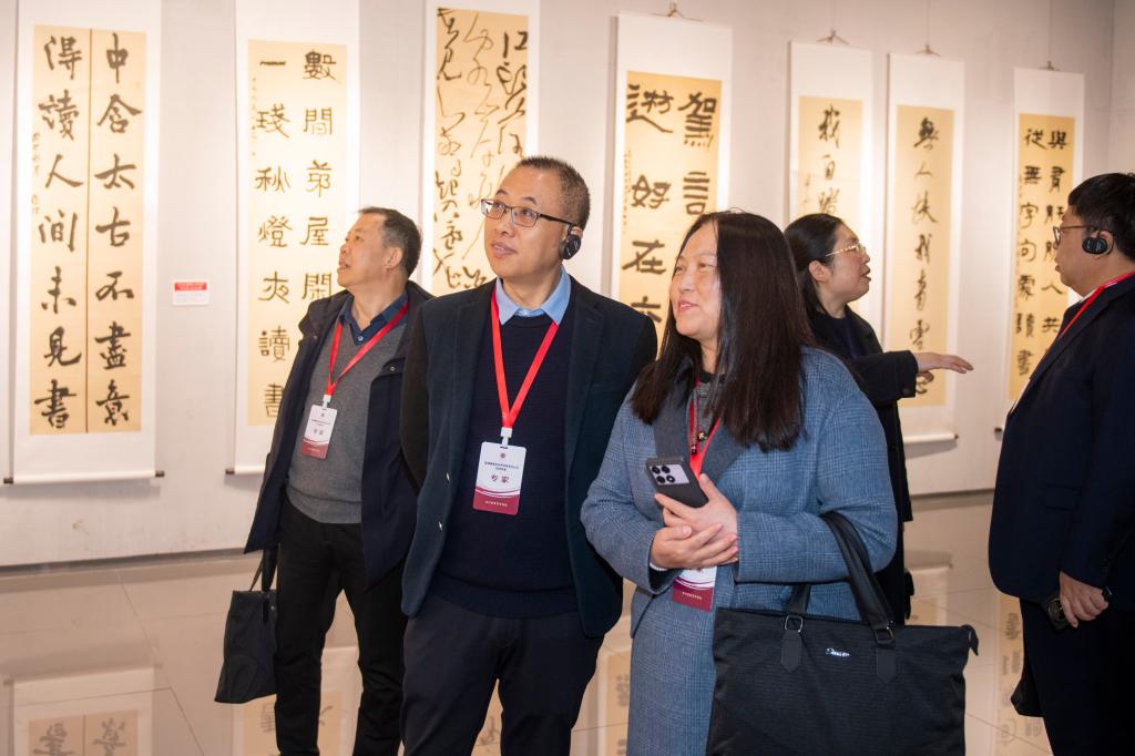 见面会结束后,专家组在学校领导陪同下考查了校史馆、美术馆三笔字展、产教融合中心、智慧教室等地。