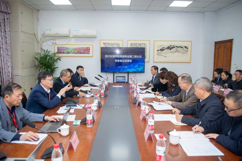 英语专业专家组王涛教授、刘承宇教授、张秀梅教授、席丽巧正高级教研员,特殊教育专业专家组于源溟教授、孙晶华教授、赵庆春正高级教师、薛云珍教授,历史学专业专家组田野教授、刘洪兴教授、李益彬教授、胡春光教授,及专家组秘书陈本炎副教授、丁洲老师、吴国华副研究员,四川省教育评估院高等教育监测评估所科研人员王安源,学校党政领导班子、相关职能部门负责人、认证专业所属学院党政班子成员及教师代表等参加了反馈会。