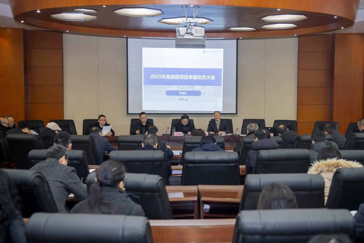 会上,科技处处长姜约教授汇报了过去一年学校高级别项目申报情况,并就2025年高级别项目工作做了安排部署,并向各二级学院、科研平台下达了2025年申报指标。