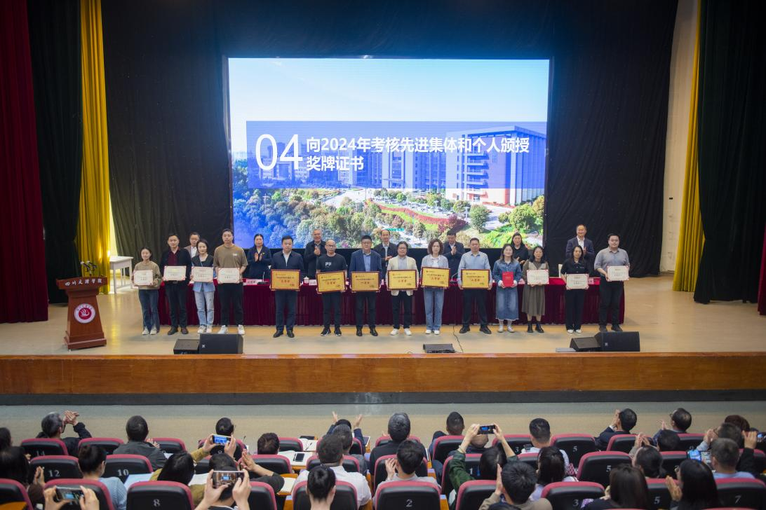 招生就业处、教务处、体育学院、人工智能与大数据学院分别作交流发言。会议对2024年毕业生就业工作先进集体、先进个人进行了表彰。