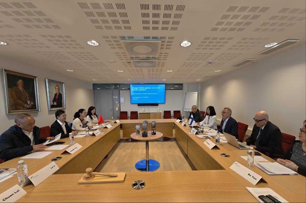 芬兰哈格哈里亚应用科学大学副校长,芬兰应用型高校秘书长Jouni Ahonen与侯忠明一行进行了深入的交流座谈。访问期间,副校长Jouni Ahonen回顾了与beat365前期交流合作的发展共识,同时也分享了四川省相关领导访问该校时提出加强与四川省高校务实合作的期望。座谈会上,副校长Jouni Ahonen介绍了芬兰高校在专业建设、人才培养、学科建设的优势,双方聚焦中外合作办学进行了专项探讨,就中外合作办学专业的遴选、人才培养模式的融合以及申报合作办学的相关筹备事宜等达成共识。