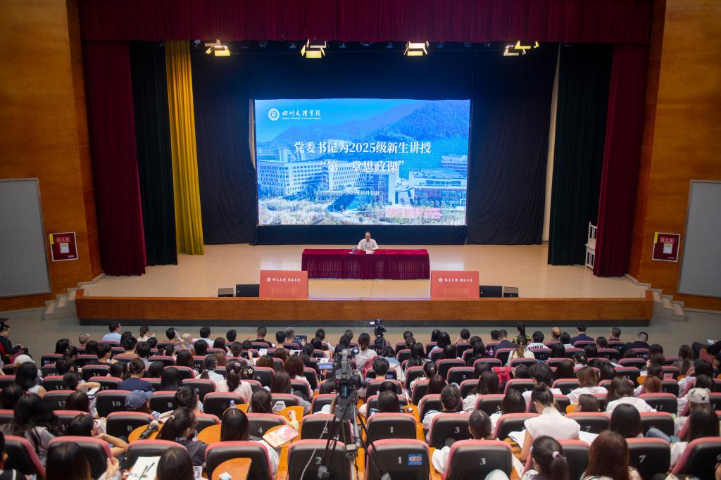 10月15日,党委书记黄涛教授以“传承红色基因 弘扬塔石精神 在中国式现代化建设中贡献青春力量”为题,为2025新生代表讲授秋季学期“第一堂思政课”,引导新生“扣好大学第一粒扣子”。
