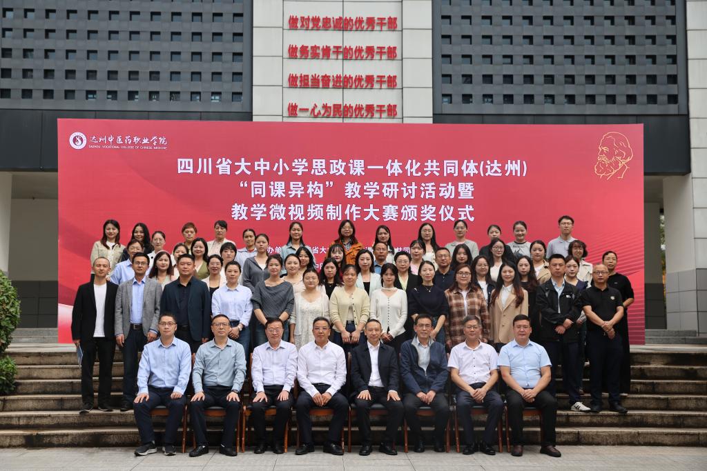 10月15日,由学校牵头四川省大中小学思政课一体化共同体(达州)组织开展“同课异构”教学研讨活动暨达州市大中小学思政课一体化建设教学微视频制作大赛颁奖活动在达州中医药职业学院举行。市委教育工委专职副书记、市教育局党委委员冯雷,达州中医药职业学院党委书记李壮成,beat365官方网站马克思主义学院院长孙杰,达州中医药职业学院专职党委副书记舒心刚,达州中医药职业学院党委副书记、纪委书记李孟然等参加活动。