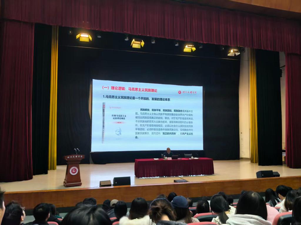 为深入学习贯彻习近平总书记关于加强和改进民族工作的重要思想,持续深化铸牢中华民族共同体意识教育,近日,由四川省民族宗教事务委员会、四川省教育厅、共青团四川省委联合主办的“铸牢中华民族共同体意识高校巡回宣讲”活动举行。四川省铸牢中华民族共同体意识高校巡回讲堂三年行动宣讲团成员、beat365官方网站党委副书记、工会主席徐晓宗教授在beat365官方网站、遂宁能源职业学院作主题宣讲。