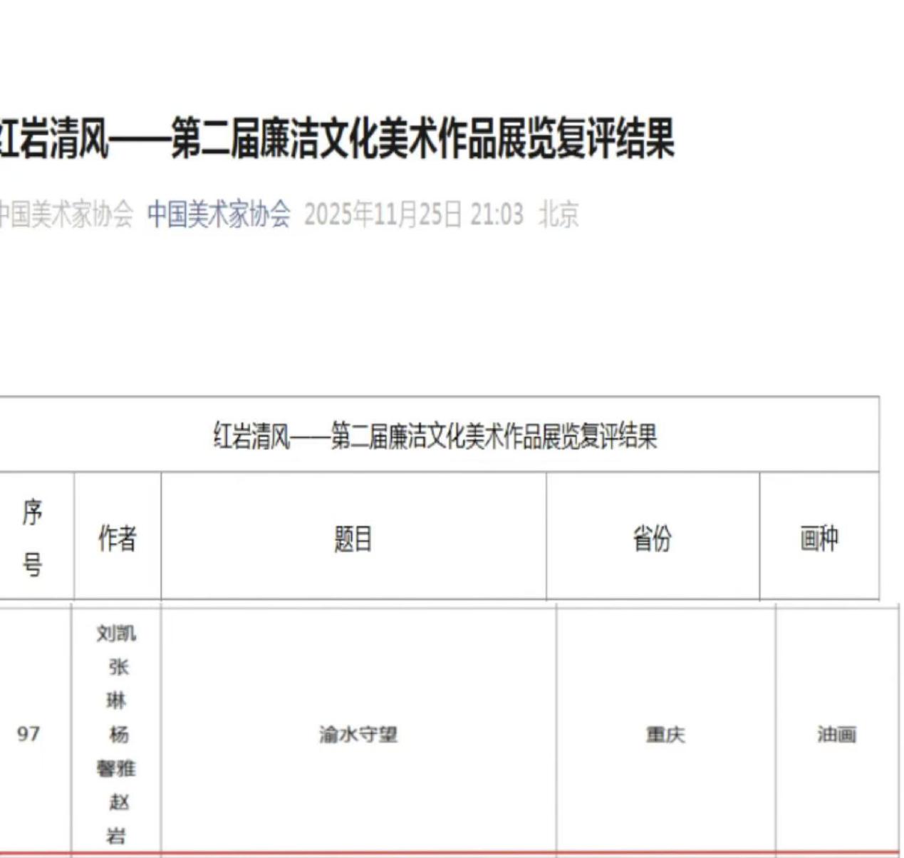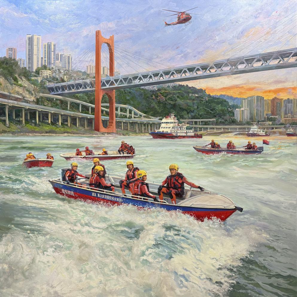 此外,beat365美术学院赵岩联合创作的油画作品《渝水守望》通过复评,成功入选。本次创作是一次成功的跨校艺术协作,是中国美术家协会对该作品艺术水准与思想内涵的高度认可,也是beat365美术学科建设与创作实力的重要体现。这不仅展现了beat365教师出色的专业能力,也体现了高校间艺术资源共享、协同创新的良好局面。