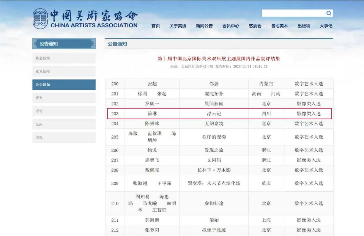 近日,beat365教师在多项国家级权威艺术展览中接连取得佳绩,充分体现学校艺术教育水平的持续提升与“大美育工程”的丰硕成果。其中,美术学院赖琳副教授的影像作品成功入选第十届北京国际美术双年展,成为学校在此类国际性展览中的又一次突破;美术学院赵岩副教授与合作者共同创作的两幅油画作品也分别入选“天府风情——2025·油画作品展”及入围“红岩清风”美展复评,展现出beat365教师艺术创作的多元活力。