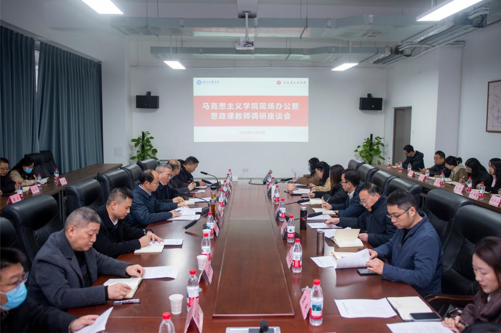 党委组织部、党委宣传部、党委办公室、党委教师工作部、人事处等相关部门负责人,马克思主义学院党政班子成员及思政课教师代表参加调研。