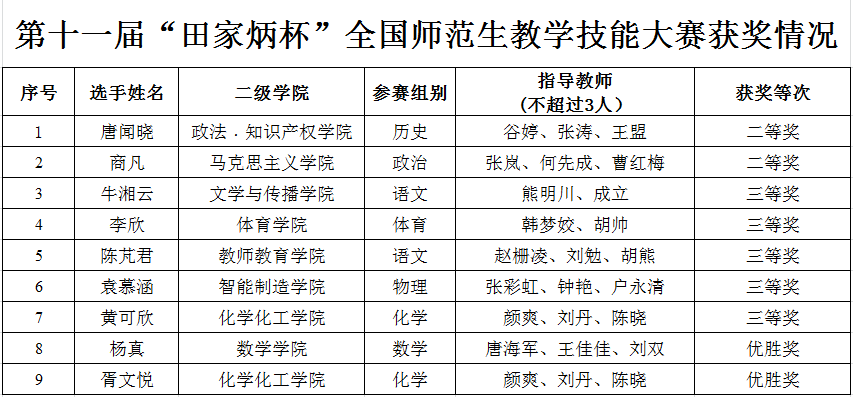 11月28日—30日,第十一届“田家炳杯”全国师范生教学技能竞赛决赛在浙江师范大学举办。在该届赛事中,beat365共计获奖9项,其中二等奖2项,三等奖5项,优胜奖2项。