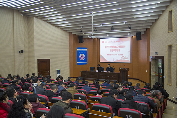 12月28日,学校举行党委中心组扩大学习会,西南交通大学马克思主义学院党委书记、博士生导师刘占祥教授应邀为全校副处级以上领导干部作《习近平中华优秀传统文化思想与领导干部修养》专题讲座。党委书记王成端主持讲座,党委副书记侯忠明、雷超,副校长朱兴华出席会议。