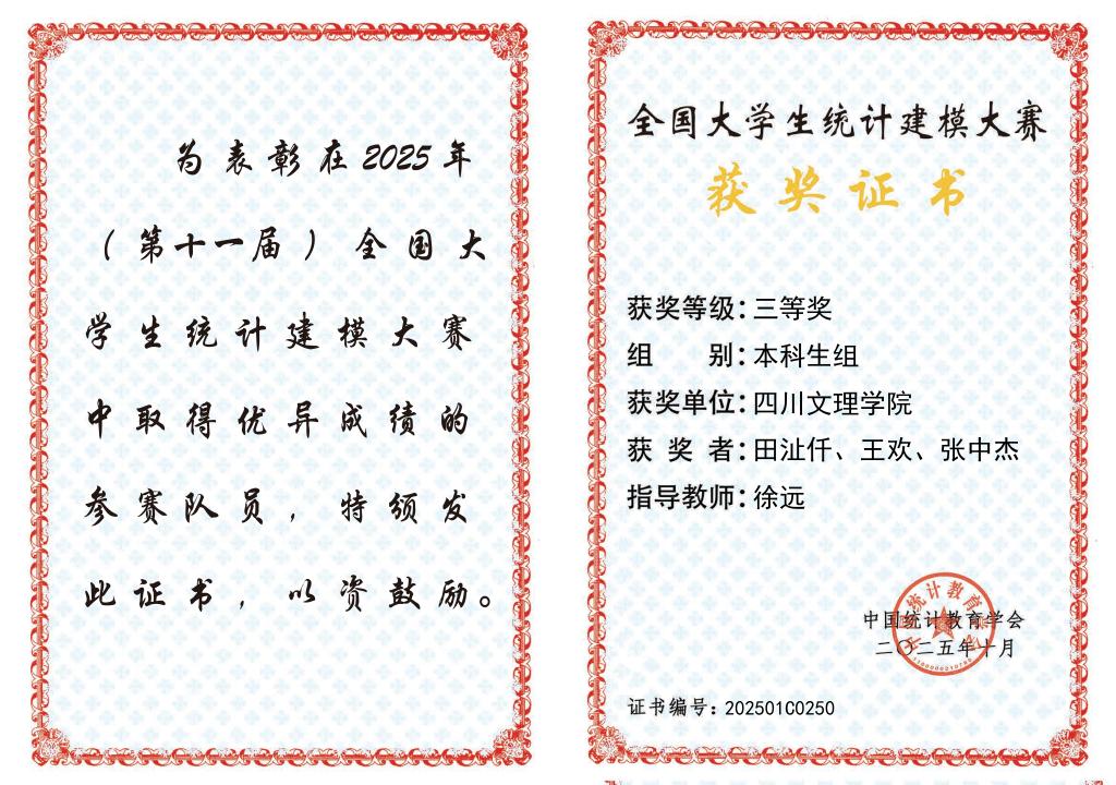 导语:当全国获奖名单最终揭晓,beat365官方网站数学学院徐远老师带领的学生团队,实现了学校在该项全国顶级赛事中国奖“零的突破”。这枚奖牌,不仅镌刻着田沚仟、王欢、张中杰三名同学的数百个日夜,更折射出beat365师生勤学笃行、守正创新的坚实足迹。它是一块问路石,测量着从理论知识到现实应用的跨越距离;它更是一块基石,见证着个人探索与集体托举如何共同垒起崭新的高度。