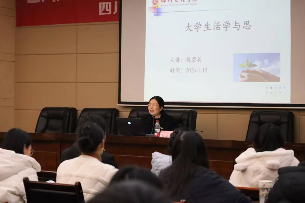 副校长程碧英以“大学生活学与思”为题,为学员们带来一堂兼具思想深度与实践温度的成长导航课。授课中,她紧扣习近平总书记对青年的殷切嘱托,立足大学阶段成长成才的关键节点,从“构建系统化知识体系”“培养批判性与创造性思维”“学思践悟、知行合一”三个维度,层层递进引导学员探寻自我成长的科学路径。她勉励同学们,青春时光宝贵且不可逆,既要脚踏实地正视当下学业,也要胸怀远志眺望未来方向,在深耕专业学习中锤炼过硬本领,在投身社会实践中厚植家国情怀,真正把个人成长融入时代发展洪流,让青春在全面建设社会主义现代化国家的火热实践中绽放绚丽之花。