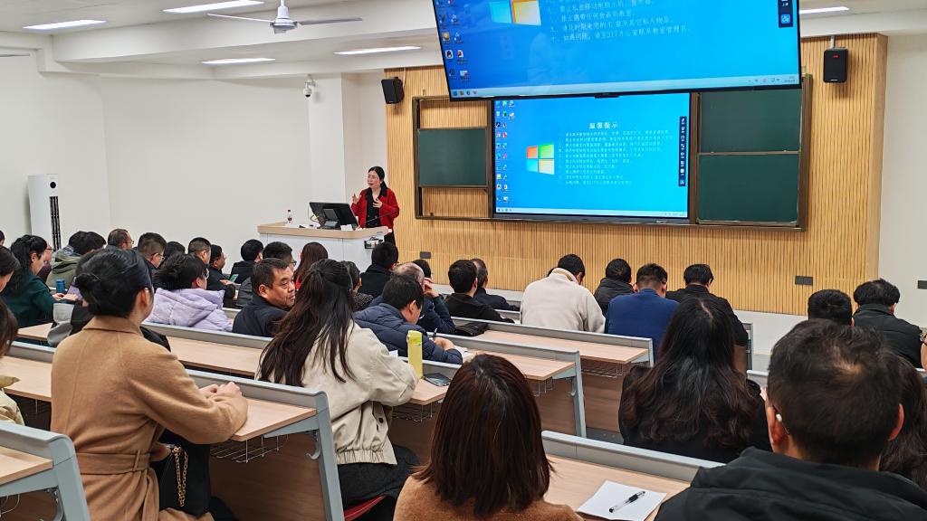 程碧英在培训上强调,智慧教学是新时代高等教育改革的必然趋势,用好智慧教学设备、掌握相关技能,是每位高校教师的应尽之责,更是提升教学质量、增强育人实效的关键支撑。她指出,面对教育数字化转型,广大教师须主动破除传统教学观念,深刻认识智慧工具在优化流程、激发兴趣、提升互动等方面的价值。要以此次培训为抓手,深研细学各类智慧平台与工具,推动技术与教学深度融合;要坚持学以致用,将学习成果转化为教学行动,推动智慧教学理念、方法与实践全面落地。持续创新教学模式,改进教学方法,着力提升课堂的时代性、针对性与有效性,以高水平教学能力与优质课堂,不断提升人才培养质量。