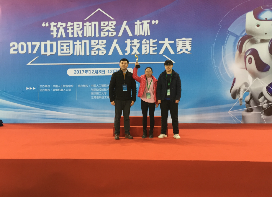 12月10日,软银机器人杯2017中国机器人技能大赛落下帷幕。由智能制造学院李斌老师指导,文藤燕、陈吉哈木、梁强、冉程浩研发的作品“自然体感式机械臂系统”在此次比赛中荣获一等奖。
