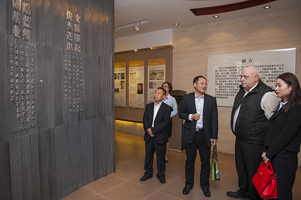 13日下午,劳伦斯一行参观了校园、校史馆、美术馆、音乐演播厅。
