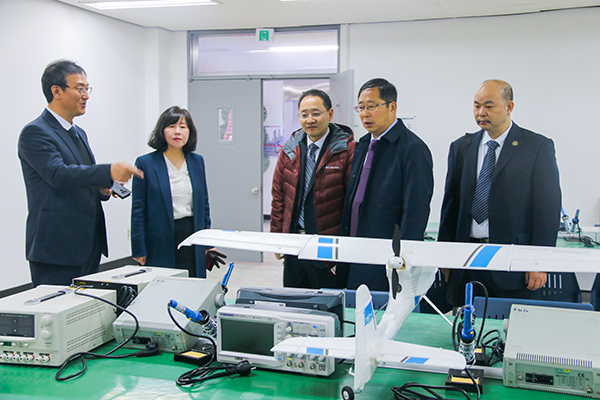 11月21日,刁永锋校长一行在草堂大学国际部部长、国际语学院院长任振蒿先生陪同下,参观了飞机维修工程、无人机、口腔卫生、护理、酒店烹饪、美容形象设计等实验中心,前往校企合作基地务安机场现场观摩了航空飞行训练。在与朴钟九先生的会谈中,双方高度评价六年来交流合作所取得的突出成绩与缔结的深厚友谊。