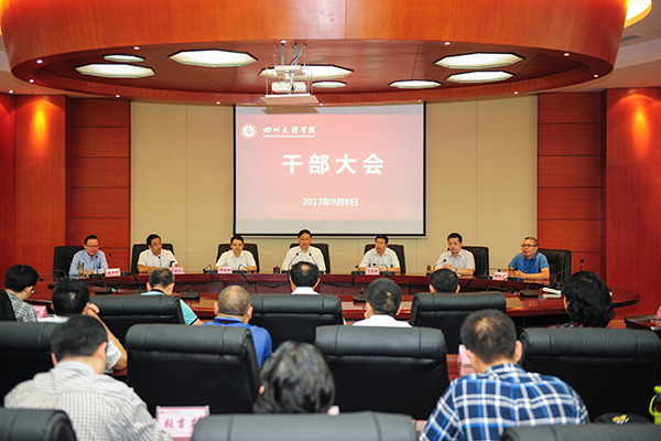 9月8日,学校在莲湖校区召开干部会议,宣布省委、省政府对朱兴华同志的任命决定。党委书记王成端宣读决定并讲话。