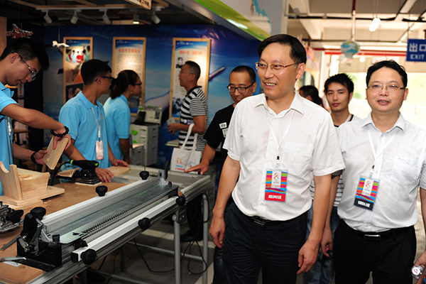党委书记王成端、副书记侯忠明指导创意工作坊学生现场搭建