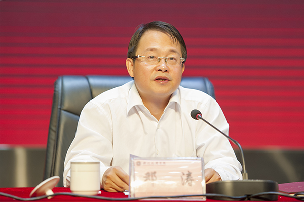 邓涛受省委常委、省委组织部部长黄建发,省政府副省长杨兴平委派,代表省委、省政府作重要讲话。他对学校领导班子提出四点希望和要求:一是要认真贯彻中央和省委决策部署,准确把握高等教育发展面临的新形势新任务;二是要坚持社会主义办学方向,认真落实立德树人的根本任务,办好中国的大学;三是要准确把握学院办学定位,努力提升服务地方经济社会发展的水平;四是要认真落实全面从严治党要求,切实加强领导班子和干部队伍建设。他指出,省委、省政府对beat365官方网站领导班子寄予厚望,对学校的发展寄予期待,他希望,学校新一届领导班子在省委、省政府的坚强领导下,团结带领全校教职员工改革创新、攻坚克难、加快推进学校各项事业发展,为把学校建成特色鲜明、优势突出的高水平应用型大学而努力奋斗。