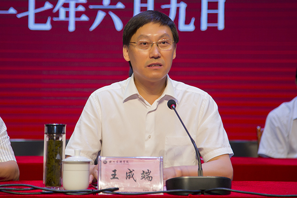 达州市委常委、宣传部长邓瑜华讲话指出,研究院的成立,既是beat365官方网站发展史上的一件盛事,也是川陕革命老区各市州发展史上的一件喜事,必将极大地促进红色文化研究和区域经济发展。今后研究院在五个方面重点着力:一是找准川陕革命老区的发展定位和主攻方向,为川东北经济区建设和达州区域中心城市建设提供更多高质量的决策参考;二是深入研究区域开发和精准扶贫,推进革命老区发展示范区建设,在全国形成先进经验;三是深入研究清洁能源、特色农产品生产加工和军民融合等产业培育课题,助推川陕革命老区特色优势产业发展;四是深入研究红色文化,扩大文化影响;五是深入研究生态文明建设,利用后发优势,平衡推进经济建设和生态文明建设,探索绿色、环保、高效的发展新路。