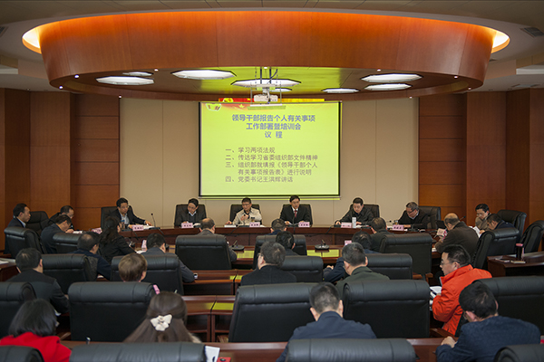 学校党委书记王洪辉出席会议并讲话,王洪辉在讲话中指出,全校干部要认真学习领会领导干部报告个人有关事项两项法规的重要意义,全面准确把握主要精神和具体内容,自觉接受组织监督,切实发挥报告制度在从严治党、从严管理监督干部方面的重要作用。他强调,做好领导干部个人有关事项报告工作,一要高度重视,深刻认识领导干部如实报告个人有关事项工作的严肃性;二要精心组织,努力确保领导干部报告个人有关事项工作的有序性;三要严明纪律,准确把握领导干部报告个人有关事项工作的原则性。他要求所有填报对象要如实报告个人有关事项,严禁漏报、瞒报、错报、乱报或以各种理由推托不报;要在规定的时间节点完成相应的工作任务,力争今年的如实填报率达到百分之百;严禁任何组织和个人干预领导干部个人事项报告查核工作,要严格遵守政治纪律、组织纪律、工作纪律和保密纪律。通过思想发动和严格要求,全校干部进一步增强了如实报告个人有关事项的政治自觉和思想自觉。
