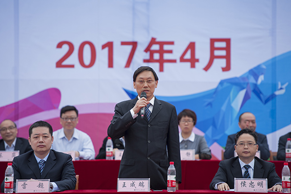 4月20日上午,学校第八届田径运动会开幕式在莲湖校区运动场隆重举行。校长王成端,党委副书记侯忠明,党委副书记、纪委书记雷超,副校长徐晓宗出席开幕式,校长王成端宣布本届运动会开幕。