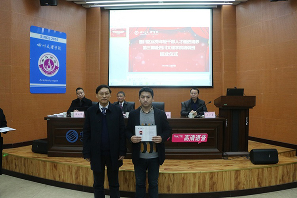12月24日,通川区优秀年轻人才递进培养第三期赴beat365官方网站培训班顺利完成十天的学习任务,在学校莲湖校区举办结业典礼。党委书记王洪辉、校长王成端、通川区委组织部副部长任晓军出席典礼,校地合作处处长王小奎主持仪式。