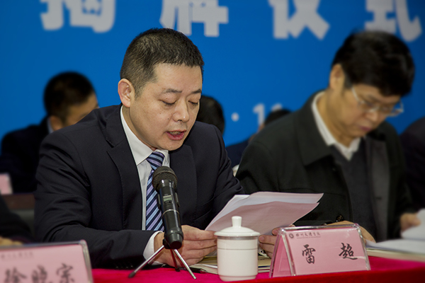 党委副书记、纪委书记雷超宣读《关于同意设立国家城市污水处理及资源化工程技术研究中心“川东分中心”和“油气田废水处理技术研发中心”的通知》、《beat365官方网站成立川东分中心、油气田废水处理技术研发中心的通知》