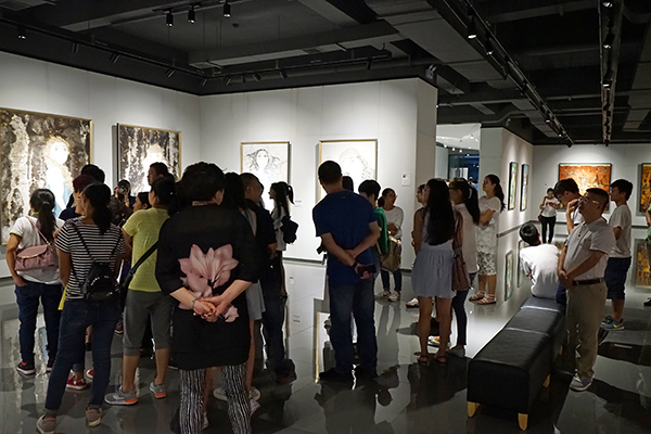 参展作者杨先平、王毅、吴仕华、赖琳、刘渐郡、胡川、王勃凯、赵岩、黄海燕以及学校师生近千人参加开幕仪式。开幕式由美术学院院长刘承川主持。