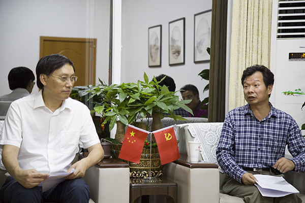 校长王成端与何国田教授商谈“两院”发展事宜