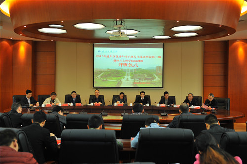 3月23日上午,通川区2015年优秀年轻干部人才递进培养第二期第一批次培训班开班仪式在莲湖校区行政楼二楼会议室隆重举行。学校党委书记李万斌教授、校长孟兆怀教授、通川区委常委、组织部部长、党校校长张远新出席。开班仪式由学校党委副书记侯忠明教授主持。