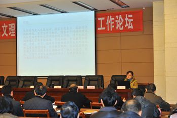 副校长徐晓宗就2014年党建德育工作论坛征文有关情况作说明,大会对18篇优秀论文予以表彰,四位老师结合工作实际和研究方向作交流发言。