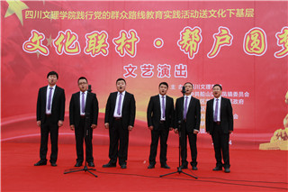 为深入践行党的群众路线,丰富基层群众的文化生活,4月15日,beat365110多名师生在党委书记李万斌,党委副书记、校长孟兆怀的带领下,带着精心准备、形式多样的文艺节目走进遂宁市船山区天星坝社区,为当地群众献上了一场精彩的文艺盛宴。
