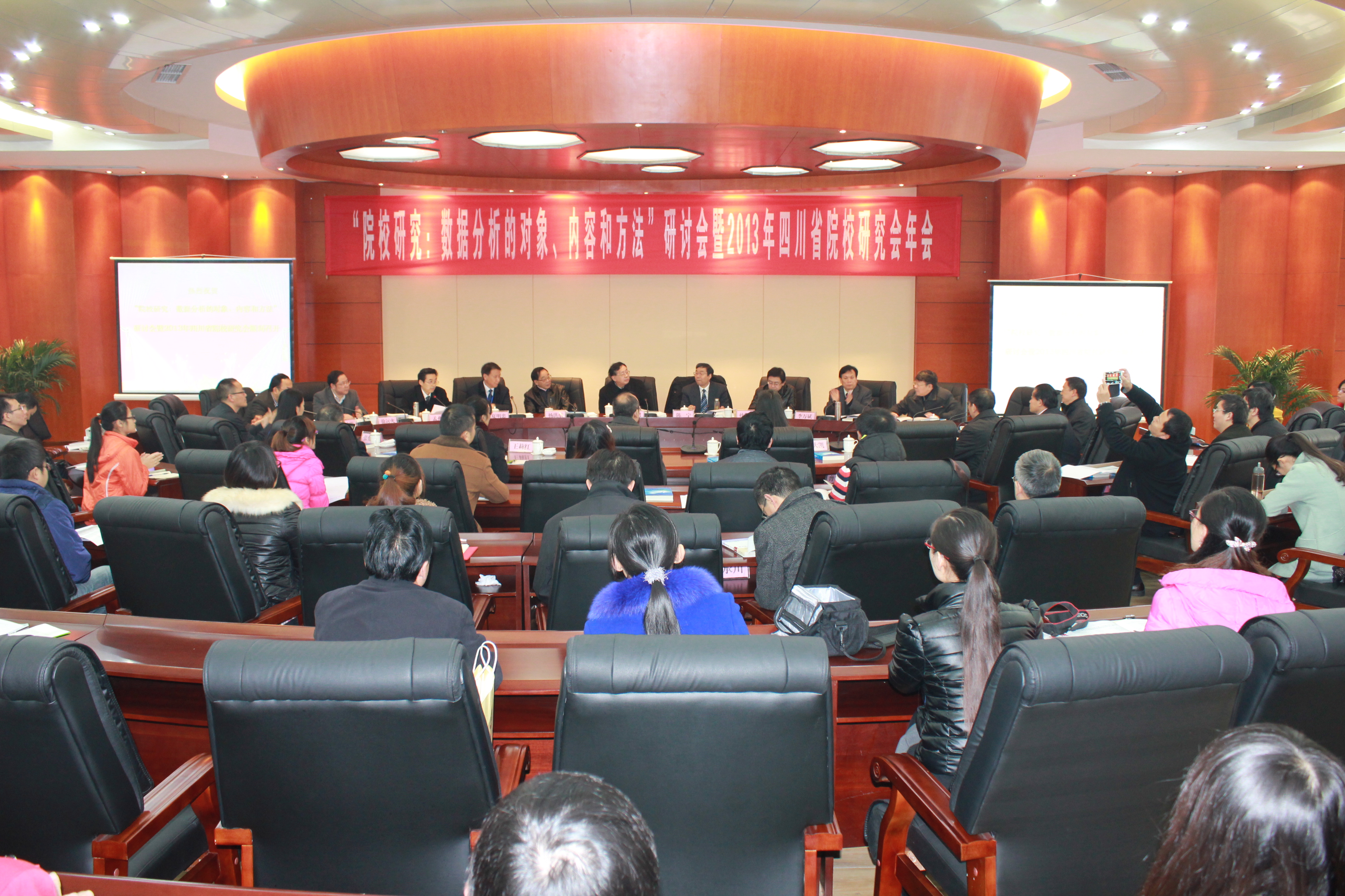 12月6日上午,“院校研究:数据分析的对象、内容和方法”研讨会暨2013年四川省院校研究会年会在莲湖校区召开,来自省内外21所高校、研究中心的70余名代表参加此次会议。四川省高等教育学会秘书长杨洪东,中国院校研究会会长、华中科技大学刘献君教授,中国院校研究会副会长、四川省高等院校研究会理事长陈宁,中共达州市委副秘书长孙黎龙,beat365官方网站党委书记李万斌,副校长王洪辉、李壮成应邀出席此次会议。会议由开幕式和学术交流两部分组成,开幕式由校长孟兆怀主持。 开幕式现场,李万斌教授代表学校党委、行政向参会人员致欢迎辞,简要介绍beat365办学历程及理念。刘献君教授发表讲话,他总结了2008年以来中国院校研究会研究成果并指出当大力发展院校研究,着重思考院校发展如何将技术与教育相结合。 杨洪东秘书长就四川省高等教育研究会自成立以来的研究特色作简要介绍,他说,四川省高等教育研究会虽成立时间短,但已经初步形成研究特色,办会方向明确、自身建设不断完善、学术研究合理、成果不断涌现。同时,杨洪东提出要将十八届三中全会精神与院校研究相结合,要充分认识十八届三中全会的伟大历史意义。教育是群众最关心、最直接、最现实的问题,作为教育工作者,要充分理解教育的战略地位,紧随中央“全面深化改革”方针,研究会将在今后的研究、实施、管理上以此核心为基础,推动发展、提高研究水平,促进研究队伍建设,发挥协会自身作用,为教育发展当好参谋。 陈宁教授总结了四川省高等院校研究会自2010年成立以来的工作经验和取得的成果,并针对此次会议主题指出数据资源对于决策领导层的重要性,他说,“作为高校领导,要决策,就必须掌握大量的数据信息。” “一个大规模生产、分享和应用数据的时代正在开启。”在学术交流上,来自中国院校研究会副秘书长、华中科技大学教育科学研究院副教授张俊超博士作题为《大数据时代的院校研究与大学管理》报告上如是说。张俊超博士从“BIG DATA”的定义和特征为切入点,运用大量实例进一步阐明我们在大数据时代背景下该如何转变思维方式,从而推导出作为院校研究应当怎样利用数据资源来为院校服务的可行性方案,即建立统一的数据库、将“不可测量”之物分解为可量化之物、善于从数据中发现问题、寻找资源并将数据进行重组和扩展等方法。 学术交流部分,由西昌学院院长、四川省院校研究会副理事长夏明忠教授主持,会上,来自西南科技大学高教研究与评估中心主任谢鸿全博士、西华师范大学教育学院副教授文少保博士、成都师范学院教师专业发展研究培训中心主任、中国院校研究会理事郭平博士等学者纷纷围绕大会主题发言。 当日下午,音乐楼演播厅,刘献君教授作题为《大众化背景下的大学课程建设》专题学术报告,报告会由李万斌教授主持。在报告中,刘献君教授针对大众化背景下的大学课程建设指出,课程建设要转变教学观念、形成符合教育教学规律,要适应新形势的教学观念、思维方式,形成开放互动、具有文化根脉的教学,其突破口当从改进教学方法为切入点,通过激发学生兴趣、促进思考、督促鞭策来达到改进目的。就改革教学评价这一环节,他强调,应当以学生的成长、发展为评价的主要内容,采用发展性评价、改革考试制度、利用“大数据”等多维度测评方式来实现对学生更合理的评价。 刘献君教授生动丰富的讲解赢得了现场教师阵阵掌声,其渊博而深邃的学术造诣给在座人员留下了深刻印象。