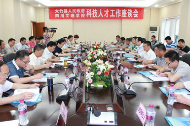 6月14日上午,大竹县科技局及大竹县科技型企业负责人在副县长马国祥的带领下,来beat365商谈科技型人才培养计划并现场选聘人才。副校长王洪辉主持座谈会。