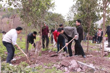 3月14日下午,党委书记李万斌、校长孟兆怀、党委副书记李佳国、副校长张志远、副校长王洪辉、副校级调研员成良臣及机关职能部门教师一起在正在修建的传媒艺术大楼前的空地栽种树木,共同绿化美化校园。 参与栽种树木的老师在专业技术人员和基建处同志的指导下,两个或三个相互配合,或浇水、或覆土、或辅助,大家干的饶有兴致,并相互交流栽种技巧和劳动体会。一个小时左右,在吉祥路的旁边就有两排新栽种的80多棵桂花树矗立在那里,一眼望过去,一道绿色的风景线煞是惹眼。