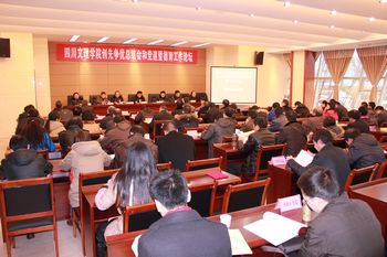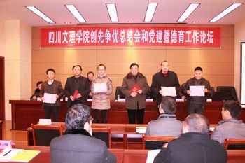 12月26日下午,由党委组织部、党委宣传部、党委学生工作部主办的“创先争优活动总结大会和2012年党建暨德育工作论坛”在行政楼一楼会议室隆重举行。党委书记李万斌、校长孟兆怀、党委副书记李佳国、副校长张志远、副校长王洪辉、副校级调研员成良臣出席会议。党委中心组成员,各系部党总支书记、副书记,全体辅导员,思政部、社科系全体教师及论文作者参加会议,校长孟兆怀教授主持大会。