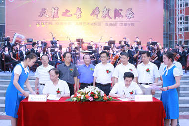 院长孟兆怀致欢迎词,他说,多年来,四川交响乐团和我院有着友好的交流和往来,今天,我们将牵手成为战略合作伙伴,在新的更为广阔的平台上开展合作,必将进一步丰富学生舞台实践经验;是我院加强实践育人、合作育人,提高学院实践教学质量,提升教学质量工程的又一重要举措;也将为共同打造优秀艺术作品,促进文化大发展、大繁荣做出更加积极的贡献。